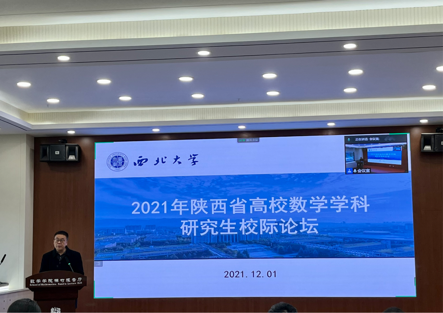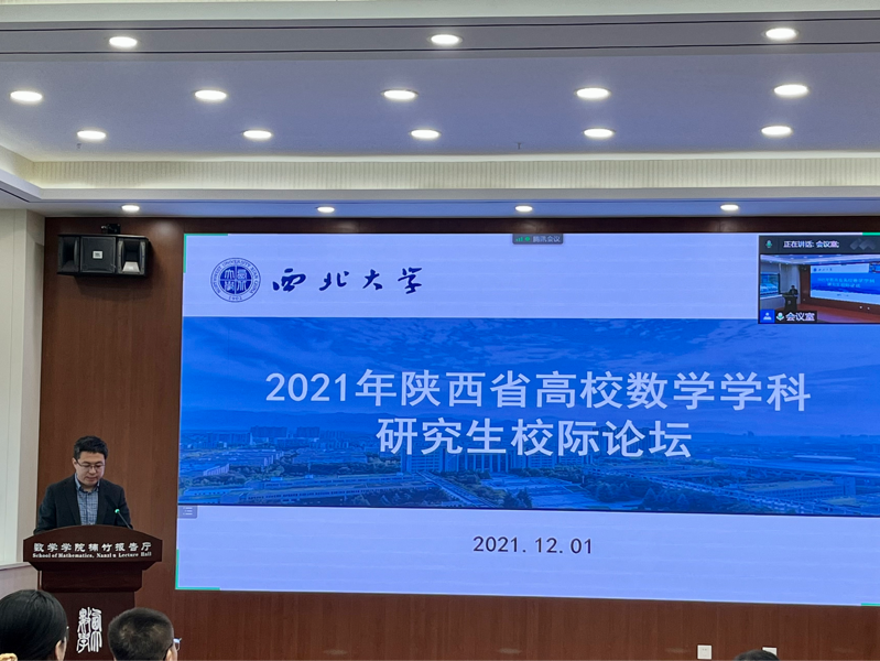 12月1日,2021年陕西省高校数学学科研究生校际论坛在yl88858永利中国长安校区召开。来自西安交通大学、西北工业大学、西安电子科技大学、陕西师范大学的各位同学及我校师生代表参加此次活动。开幕式由学院党委副书记王理鹏主持。