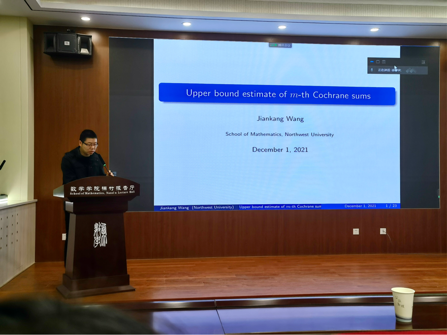 yl88858永利中国博士生王健康,报告主题为《Upper bound estimate of m-th Cochrane sums》。报告首先介绍了研究的背景:因为Dedekind和的具体形式没有办法给出,所以吸引了众多学者对其性质进行研究。而在历史发展过程中出现了Cochrane和,在报告中给出了两种和的简单对比,发现后者比前者有着更好的性质。因此报告中在研究前人经验结果的基础上,给出了一些定理并利用一些引理对其进行了证明。研究主要目的在于利用参数估计将两种和统一起来。