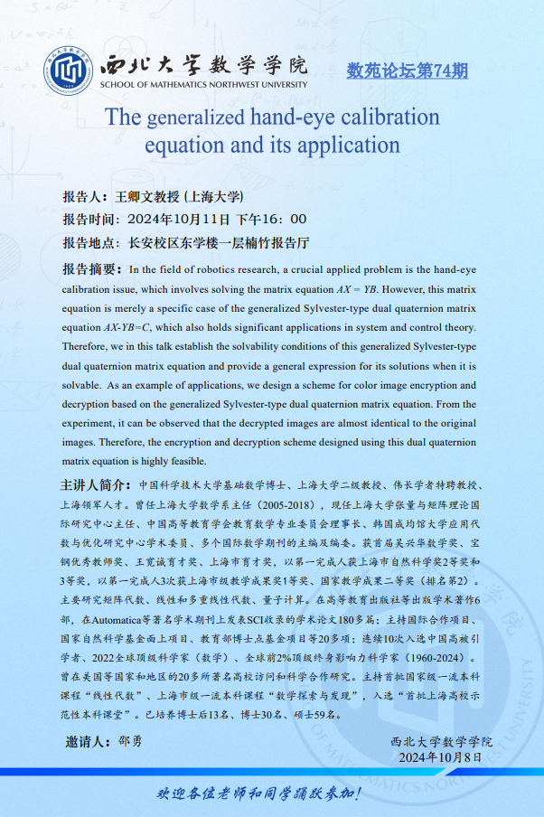 The generalized hand-eye calibration equation and its application