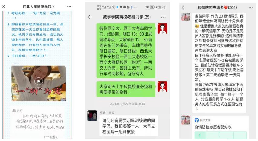 以学生诉求为抓手,在疫情防控实战中扎实推进“我为学生办实事”实践活动。学院定期召开永利集团形势研判会,制定工作预案,第一时间最大限度地解决学生急难愁盼问题。考研前夕,组织师生、学生家长、校友给考研学生送祝福、化焦虑,多名教工党员主动报名承担借考、隔离等特殊类型考生的考务任务;封城后,紧急安排专车接送23名学生赴雁塔区、碑林区、长安区等地参加研究生入学考试,确保学生和家长无后顾之忧。在C类密接、黄码以及其他管控学生隔离期间,统筹安排师生志愿者为160余名学生提供点对点无接触送餐服务。开辟特殊管理服务通道,解决药品短缺、定期肾透析(2次/周)等特殊学生就医困难,确保学生生命健康。
